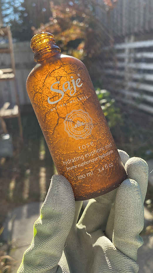This initiative isn’t a corporate partnership. It’s an independent, artist-led exploration inspired by the products I already use and love, and by a very real gap in the circular lifecycle of essential-oil packaging. Saje doesn’t currently offer a recycling stream for its glass bottles, and that sparked an opportunity: what could these materials become when treated as resources instead of waste?
